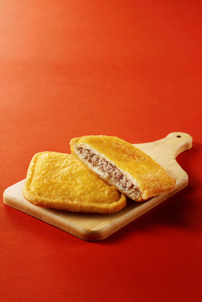 金黃耀眼的「新春黃金包」。鹹鮮味十足的吞拿魚餡,夾入鬆軟麵包後,均勻沾上蛋液炸至外層金黃酥脆,內裡軟熟鮮香,一啖咬下,滋味滿溢,為新春帶來好運「包」圍的美好寓意。